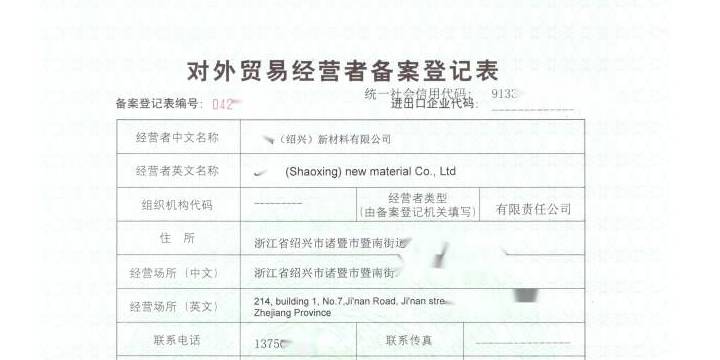 進(jìn)出口公司辦理對外貿(mào)易經(jīng)營者備案登記表